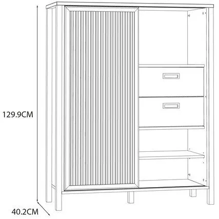 • szerokość: 103,5 cm, głębokość: 40 cm, wysokość: 130 cm.