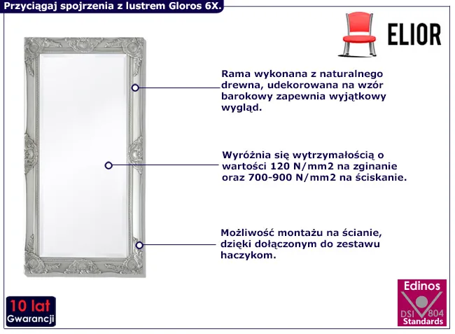 Dotyczy: Wiszące białe lustro z ramą w stylu rustykalnym - Rafen 6X