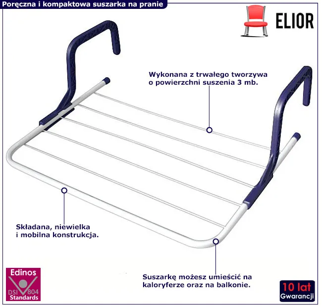 Jak szybko wysuszyć małe pranie albo bieliznę? Wcale nie potrzebujesz ogromnej suszarki bębnowej. Jest o wiele prostszy i bardziej ekonomiczny sposób. Mała, poręczna i praktyczna suszarka balkonowa Andrea marki Edinos Premium.
