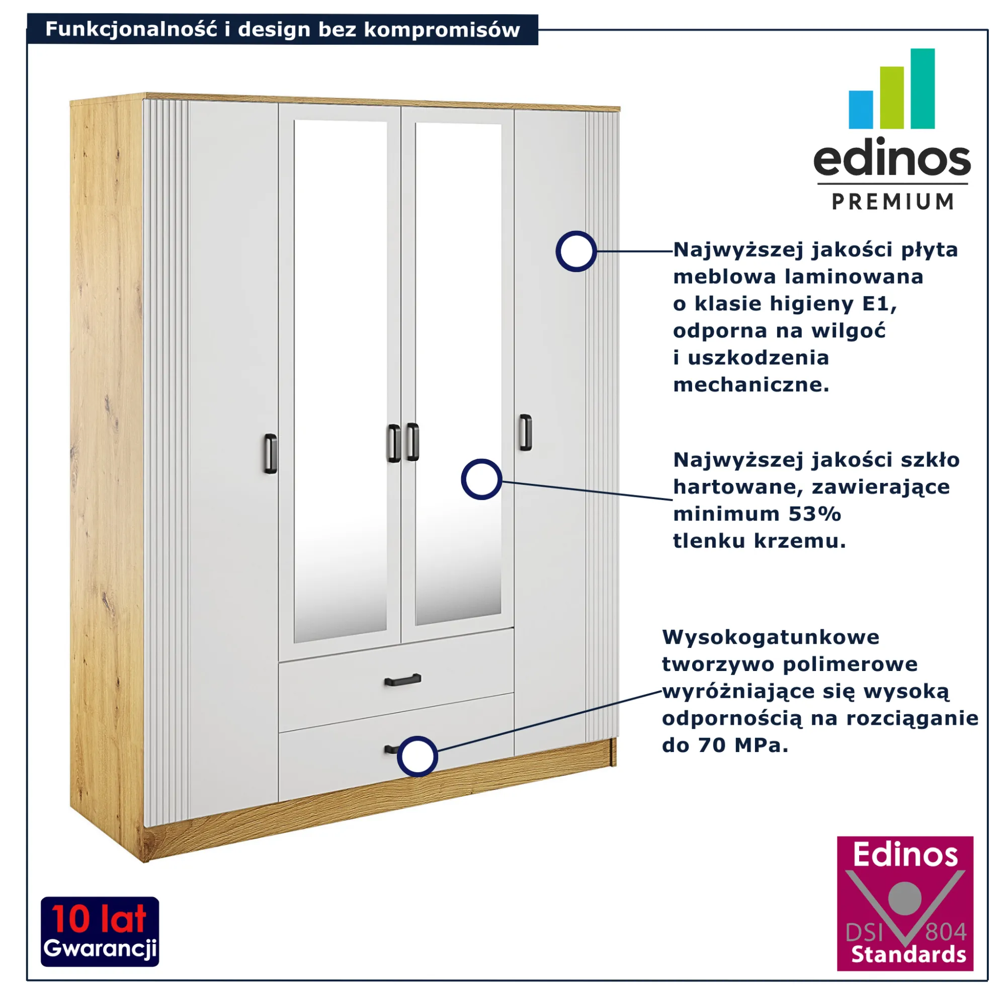 Dotyczy: Kaszmirowa czterodrzwiowa szafa uchylna z lustrem - Veloris