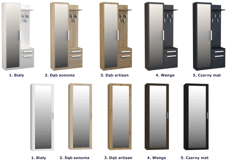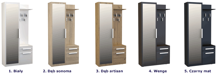 Modny kolor: wenge. Do wyboru aż 5 wersji kolorystycznych oraz wersja Kaya bez dodatkowych wieszaków i szafki z szufladą. Kliknij w link i sprawdź jaki kolor i jaką wersję szafy Kaya lubisz najbardziej. Stwórz własny praktyczny zestaw do przedpokoju!
