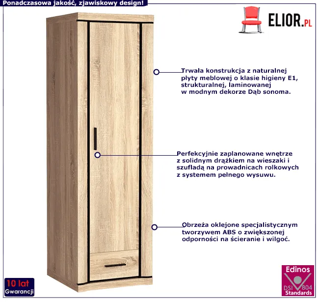 - Szukasz stylowej szafy do niewielkiego wnętrza? Kliknij w link i sprawdź wąskie szafy w sklepie Edinos.pl. Stwórz własny praktyczny zestaw. Zamawiając produkty razem, oszczędzasz na współnej wysyłce.