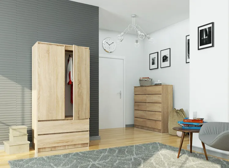 Szafa na ubrania do sypialni z 2 szufladami dąb sonoma - Conrad 3X