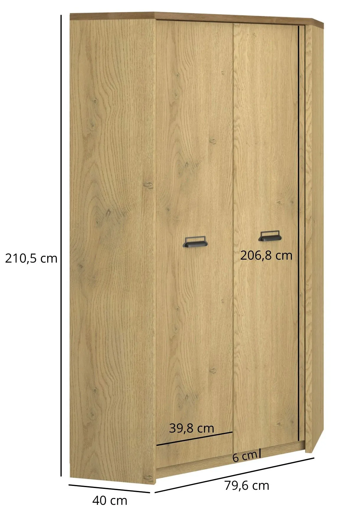 Szafa sprawia wrażenie dobrze wykonanej, materiały wydają się solidne, powierzchnie gładkie, a konstrukcja stabilna. Drzwi otwierają się płynnie, nic nie zgrzyta. Kolor dębu ładnie komponuje się z drewnianą podłogą. Bardzo zadowolony jestem z wyglądu i funkcjonalności tej szafy.