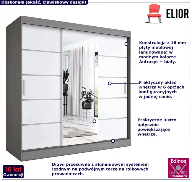Dotyczy: Szafa przesuwna 200 cm antracyt - Marmos 6X