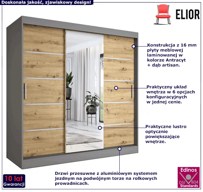 Dotyczy: Szafa przesuwna 200 cm antracyt + dąb sonoma - Marmos 6X