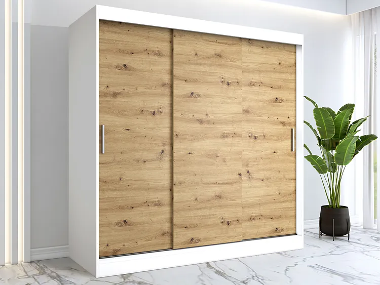 Szafa przesuwna 200 cm biały + dąb artisan - Erco 6X