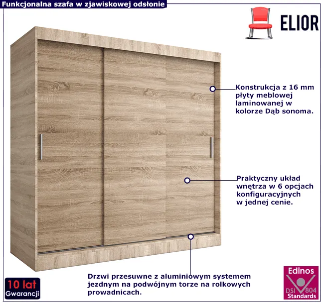 Dotyczy: Szafa przesuwna 200 cm dąb sonoma + biały - Erco 6X