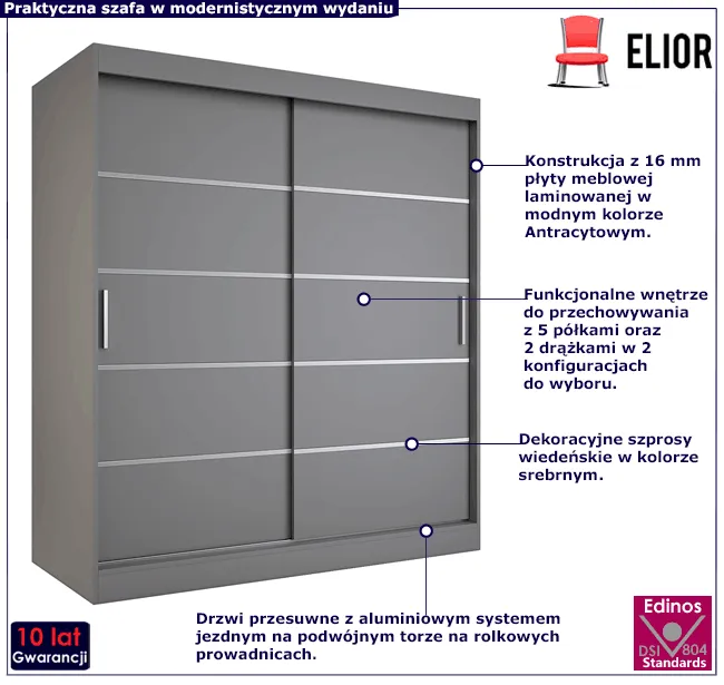 Dotyczy: Szafa przesuwna antracyt + dąb artisan 180 cm - Bohosa 5X