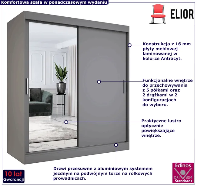 Szafa przesuwna z lustrem antracyt Seko 5X