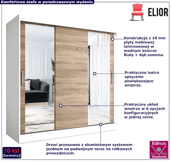 Zdecyduj się na szafę Seko 6X marki Elior i sprawdź, jak elegancja i funkcjonalizm mogą zrewolucjonizować Twoją przestrzeń. Wybierz doskonałą jakość, wyjątkowy design i praktyczne rozwiązania, które spełnią Twoje oczekiwania. Zamów jeszcze dziś szafę Seko 6X w atrakcyjnej cenie 1998 zł. Wybierz przesuwną szafę Seko 6X i sprawdź jak genialnie urządzisz z nią swoje wnętrze już teraz!