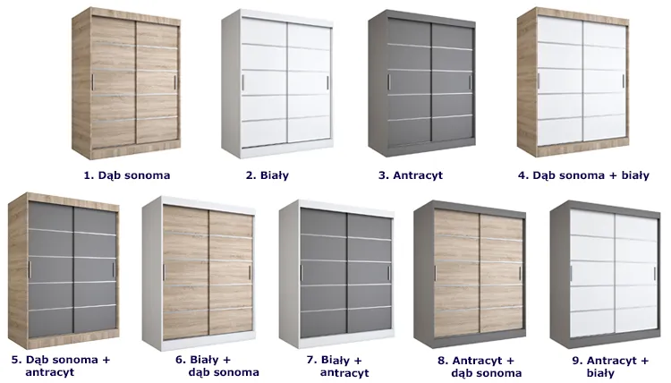 Dotyczy: Szafa przesuwna antracyt + biały 150 cm - Bohosa 4X