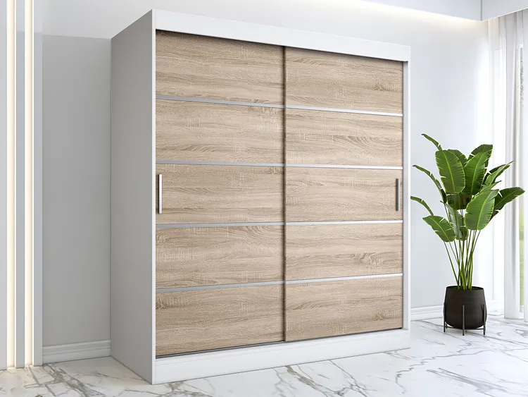 Szafa przesuwna biel + dąb sonoma 180 cm - Bohosa 5X