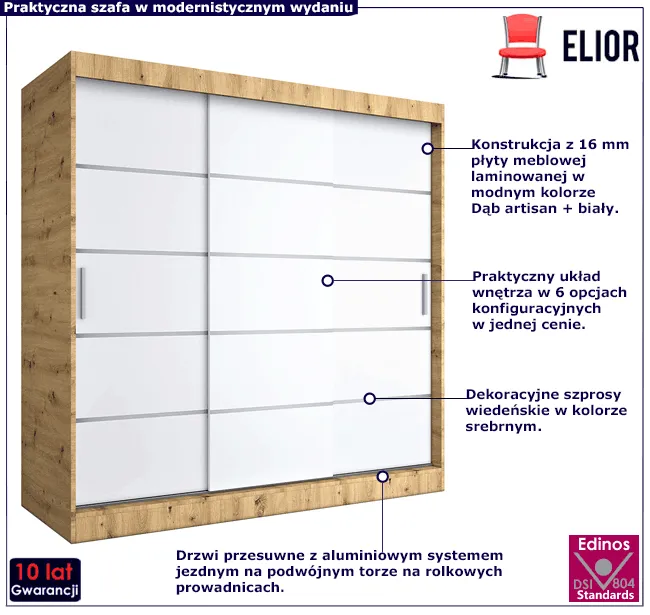 Dotyczy: Szafa przesuwna dąb artisan 200 cm - Bohosa 6X