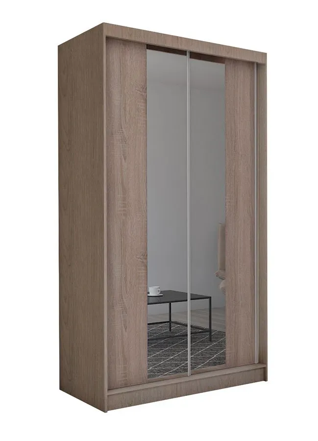 Komfortowa i odpowiednio zaprojektowana szafa to mebel niezbędny w każdym domu. Dzięki niej nasze wnętrze cechuje ład i porządek – wszystkie ubrania i dodatki są na swoim miejscu, starannie złożone lub zawieszone na wieszakach, a jednocześnie zawsze pod ręką. Szafa Unao 2X to pojemny i nowoczesny mebel do sypialni, pokoju dziennego, młodzieżowego lub przedpokoju, gdzie gdzie będzie pełnić rolę rodzinnej garderoby. Szafa zachwyca elegancką linią oraz ciekawą kolorystyką frontów do wyboru. Szafa z drzwiami przesuwnymi Unao 2X w kolorze dąb sonoma została skonstruowana z najwyższej jakości laminowanej płyty meblowej o grubości 16 mm o klasie higieny E1. Dodatkowo uszlachetniono ją cienkimi filmami melaminowymi, by zwiększyć jej trwałość. Płyta posiada specjalistyczne włókna ułożone różnokierunkowo o strukturze sinusoidalnej, co zapewnia nadanie jej cech jakościowych oraz wytrzymałościowych. Wnętrze zostało zorganizowane w przemyślany sposób: szafa zawiera 4 pojemne półki na ubrania, które przechowujemy złożone w kostkę. Na półkach zmieszczą się także większe gabarytowo przedmioty, walizki, zapasowa pościel czy ubrania sezonowe. Szafa mieści dwie przestronne części z drążkiem, przeznaczone do przechowywania odzieży wierzchniej, garniturów i ubrań wizytowych. Na froncie szafy zostało zamontowane duże lustro, które pełni funkcję estetyczną, powiększając optycznie i rozjaśniając pomieszczenie, ale także praktyczną, pozwalając na skontrolowanie wyglądu przed wyjściem z domu. Szafa Unao 2X w kolorze dąb sonoma została wyposażona w praktyczne i wygodne drzwi przesuwne z systemem jezdnym Laguna oraz innowacyjnym systemem "cichego domyku" Blumer 4X Plus. Drzwi tego typu przesuwają się po specjalnych szynach, a dzięki systemowi "cichego domyku" otwierają i zamykają się się lekko i bezszelestnie. Dodatkowym atutem drzwi przesuwnych jest oszczędność przestrzeni - rozwiązanie to szczególnie dobrze sprawdza się w niewielkich wnętrzach. Tak zaprojektowany mebel sprawdzi się w niejednej aranżacji, od minimalistycznej po styl skandynawski. Szafa, dzięki możliwości indywidualnego wyboru kolorystyki łatwo dopasuje się stylistycznie do mebli, które już posiadasz. Z szafą Unao 2X urządzisz wnętrze ze smakiem i z klasą, a Twoja garderoba będzie zawsze przechowywana w idealnym porządku.