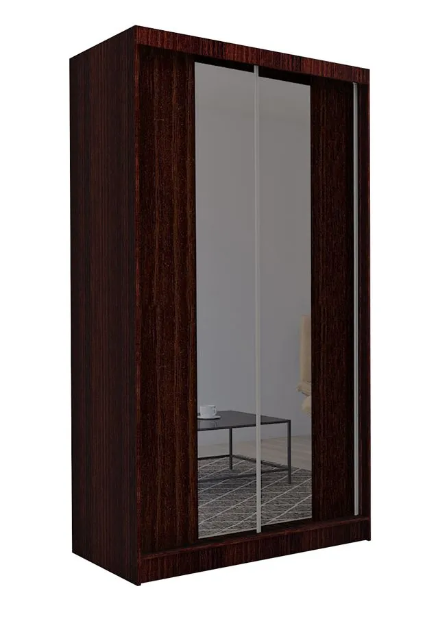 Komfortowa i odpowiednio zaprojektowana szafa to mebel niezbędny w każdym domu. Dzięki niej nasze wnętrze cechuje ład i porządek – wszystkie ubrania i dodatki są na swoim miejscu, starannie złożone lub zawieszone na wieszakach, a jednocześnie zawsze pod ręką. Szafa Unao 2X to pojemny i nowoczesny mebel do sypialni, pokoju dziennego, młodzieżowego lub przedpokoju, gdzie gdzie będzie pełnić rolę rodzinnej garderoby. Szafa zachwyca elegancką linią oraz ciekawą kolorystyką frontów do wyboru. Szafa z drzwiami przesuwnymi Unao 2X w kolorze wenge została skonstruowana z najwyższej jakości laminowanej płyty meblowej o grubości 16 mm o klasie higieny E1. Dodatkowo uszlachetniono ją cienkimi filmami melaminowymi, by zwiększyć jej trwałość. Płyta posiada specjalistyczne włókna ułożone różnokierunkowo o strukturze sinusoidalnej, co zapewnia nadanie jej cech jakościowych oraz wytrzymałościowych. Wnętrze zostało zorganizowane w przemyślany sposób: szafa zawiera 4 pojemne półki na ubrania, które przechowujemy złożone w kostkę. Na półkach zmieszczą się także większe gabarytowo przedmioty, walizki, zapasowa pościel czy ubrania sezonowe. Szafa mieści dwie przestronne części z drążkiem, przeznaczone do przechowywania odzieży wierzchniej, garniturów i ubrań wizytowych. Na froncie szafy zostało zamontowane duże lustro, które pełni funkcję estetyczną, powiększając optycznie i rozjaśniając pomieszczenie, ale także praktyczną, pozwalając na skontrolowanie wyglądu przed wyjściem z domu. Szafa Unao 2X w kolorze wenge została wyposażona w praktyczne i wygodne drzwi przesuwne z systemem jezdnym Laguna oraz innowacyjnym systemem "cichego domyku" Blumer 4X Plus. Drzwi tego typu przesuwają się po specjalnych szynach, a dzięki systemowi "cichego domyku" otwierają i zamykają się się lekko i bezszelestnie. Dodatkowym atutem drzwi przesuwnych jest oszczędność przestrzeni - rozwiązanie to szczególnie dobrze sprawdza się w niewielkich wnętrzach. Tak zaprojektowany mebel sprawdzi się w niejednej aranżacji, od minimalistycznej po styl skandynawski. Szafa, dzięki możliwości indywidualnego wyboru kolorystyki łatwo dopasuje się stylistycznie do mebli, które już posiadasz.Z szafą Unao 2X urządzisz wnętrze ze smakiem i z klasą, a Twoja garderoba będzie zawsze przechowywana w idealnym porządku.