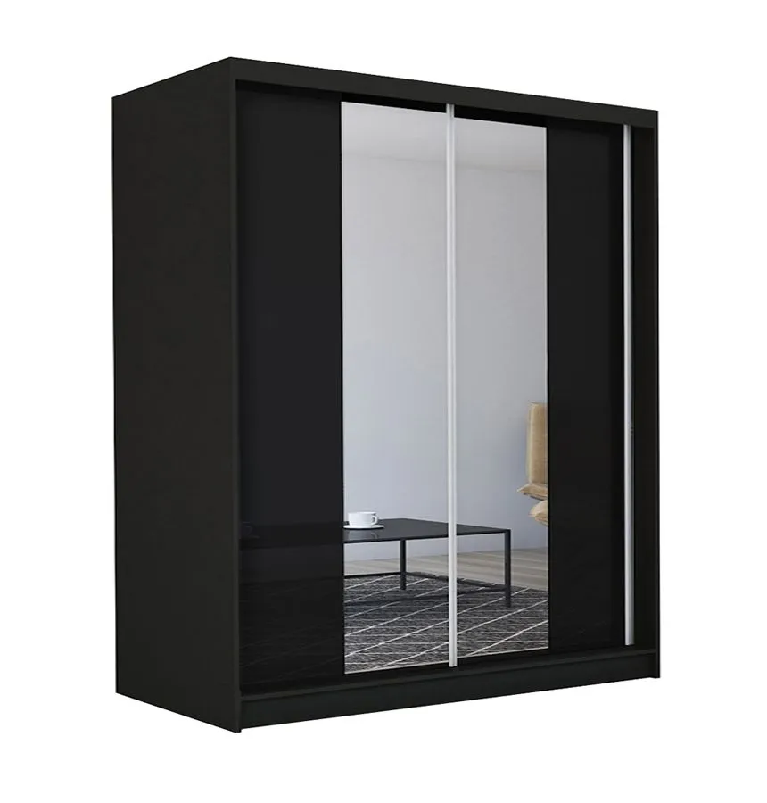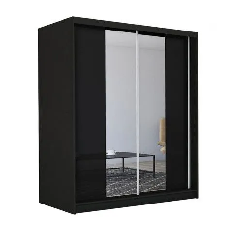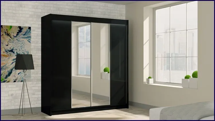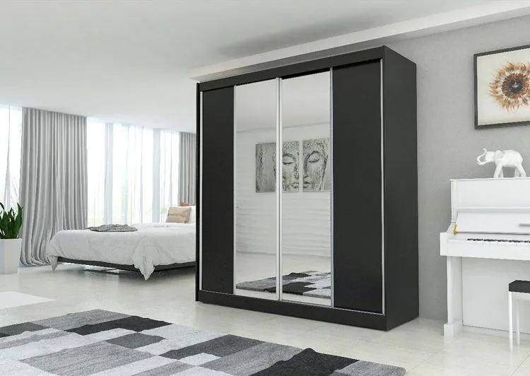 Szafa to szczególny mebel w domu - musi być pojemna, by zmieścić wszystkie nasze rzeczy, odpowiednio duża, by służyła za domową garderobę i jednocześnie prawie niewidoczna, aby nie przytłoczyła swoimi rozmiarami innych mebli i całej aranżacji wnętrza. Czarna szafa przesuwna Unao 3X z racjonalnie zaplanowaną przestrzenią do przechowywania posiada 10 pojemnych półek na ubrania, które należy przechowywać złożone w kostkę oraz na większe gabarytowo przedmioty, walizki, zapasową pościel czy ubrania sezonowe. Komfortowa część z drążkiem na płaszcze, garnitury i ubrania wizytowe jest wystarczająco wysoka, żeby rzeczy wisiały swobodnie nie gniotąc się. Tak zaprojektowana szafa doskonale zorganizuje przestrzeń w każdym wnętrzu - będzie idealnym miejscem przechowywania ubrań i dodatków w sypialni czy pokoju młodzieżowym. W przedpokoju będzie służyła jako rodzinna garderoba, a w pokoju dziennym jako miejsce przechowywania ubrań i domowych drobiazgów, które chcemy mieć pod ręką, ale nie na widoku. Szafa Unao 3X została skonstruowana z najwyższej jakości laminowanej płyty meblowej o grubości 16 mm o klasie higieny E1. Dodatkowo uszlachetniono ją cienkimi filmami melaminowymi, by zwiększyć jej trwałość. Płyta posiada specjalistyczne włókna ułożone różnokierunkowo o strukturze sinusoidalnej, co zapewnia nadanie jej cech jakościowych oraz wytrzymałościowych. Duże lustro zamontowane na froncie szafy pełni funkcję praktyczną, ale także estetyczną, powiększając optycznie i rozjaśniając pomieszczenie. Szafa Unao 3X w kolorze czarnym została wyposażona w praktyczne i wygodne drzwi przesuwne z systemem jezdnym Laguna z kółkami łożyskowymi i aluminiowymi prowadnicami oraz innowacyjny system "cichego domyku" Blumer 4X Plus. Drzwi tego typu przesuwają się po specjalnych szynach, a dzięki systemowi "cichego domyku" otwierają i zamykają się się lekko i bezszelestnie. Dodatkowym atutem drzwi przesuwnych jest oszczędność przestrzeni - rozwiązanie to szczególnie dobrze sprawdza się w niewielkich wnętrzach. Z Unao 3X Twoja przestrzeń będzie zawsze idealnie zorganizowana, a Twoja garderoba posegregowana i zawsze pod ręką.