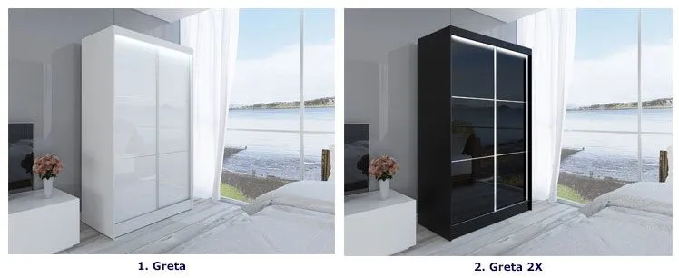 Ekstrawagancja połączenia wybarwienia korpusu z uniwersalną kolorystyką lacobeli, kontrolowana prostą, minimalistyczną formą jest nieodłącznym atrybutem szafy Selen 2X w każdym dostępnym modelu. Dyskretne światło energooszczędnych ledów podkreśla dostojny nastrój szafy, wprowadza intymny klimat do pomieszczenia, w którym znajduje się Twój wyjątkowy mebel. Odnajdziesz ją w aranżacjach minimalistycznych, skandynawskich, nowoczesnych, modernistycznych, nowojorskich, japońskich, futurystycznych niezależnie od miejsca przeznaczenia. W sypialni, w salonie, w przedpokoju spełni funkcję zarówno schowka na Twoją garderobę i przedmioty codziennego użytku, jak i funkcję stricte dekoratorską. Greta z nutą glamour to wersja szafy z dodatkową lustrzaną powierzchnią wkomponowaną we front przesuwnych drzwi.