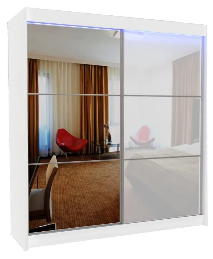 - Modny kolor: biały + front z białego szkła lacobel i lustra.