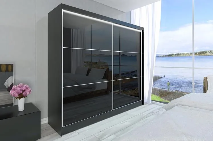 Ekstrawagancja połączenia wybarwienia korpusu z uniwersalną kolorystyką lacobeli, kontrolowana prostą, minimalistyczną formą jest nieodłącznym atrybutem szafy Selen 4X w każdym dostępnym modelu. Dyskretne światło energooszczędnych ledów podkreśla dostojny nastrój szafy, wprowadza intymny klimat do pomieszczenia, w którym znajduje się Twój wyjątkowy mebel. Odnajdziesz ją w aranżacjach minimalistycznych, skandynawskich, nowoczesnych, modernistycznych, nowojorskich, japońskich, futurystycznych niezależnie od miejsca przeznaczenia. W sypialni, w salonie, w przedpokoju spełni funkcję zarówno schowka na Twoją garderobę i przedmioty codziennego użytku, jak i funkcję stricte dekoratorską. Greta z nutą glamour to wersja szafy z dodatkową lustrzaną powierzchnią wkomponowaną we front przesuwnych drzwi.