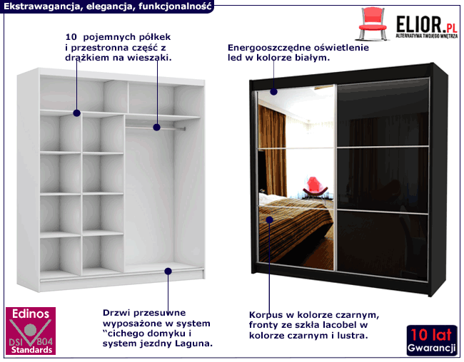 - Modny kolor: czarny + front z czarnego szkła lacobel i lustra.