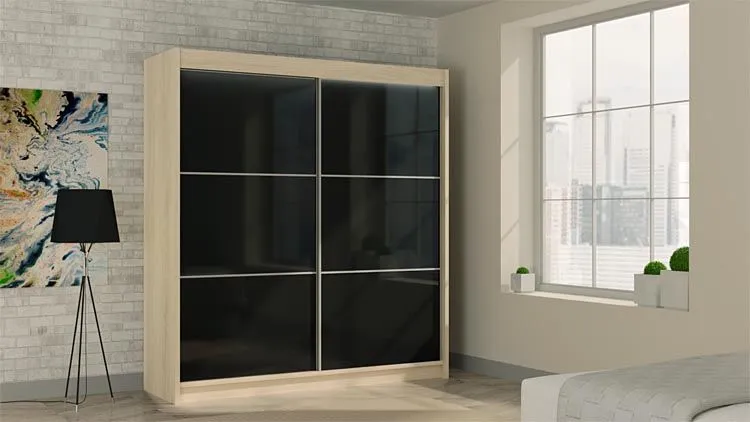 - Modny kolor: dąb sonoma + front z czarnego szkła lacobel.