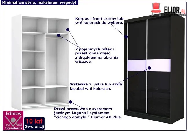 • W zależności od modelu dostajesz szafę bogatą w ilość półek oraz przestrzeni z drążkiem na wieszaki.