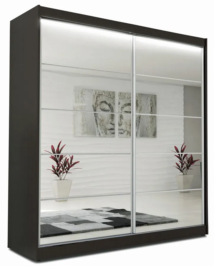 - Listwa z oświetleniem LED w kolorze białym podnosi walory estetyczne i pełni funkcję praktyczną oświetlając wnętrze szafy.