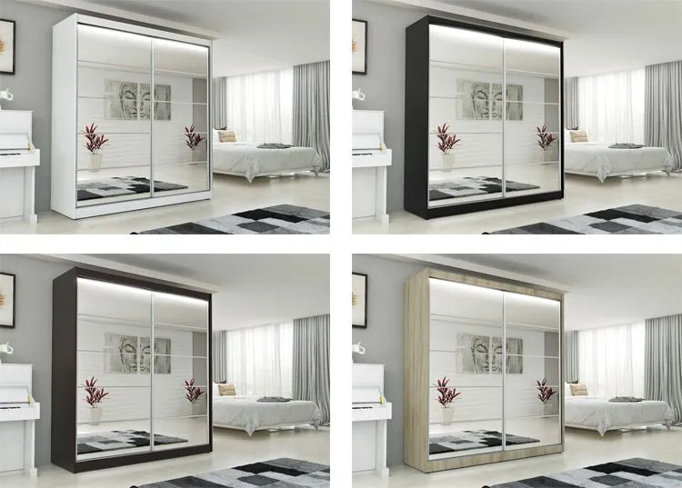 Szafa Canat 4X to komfortowy mebel do sypialni, pokoju dziennego lub przedpokoju, gdzie będzie pełnić rolę rodzinnej garderoby. Szafa zachwyca elegancką linią oraz ciekawą kolorystyką frontów do wyboru. Duże lustro na froncie optycznie powiększa niewielkie pomieszczenie. Dodatkowym atutem jest energooszczędne oświetlenie LED w kolorze białym pokreśli minimalistyczny i nowoczesny design szafy i nada wnętrzu charakteru subtelnej elegancji. Pojemna i szeroka na 200 cm szafa pomieści wszystkie ubrania, odzież wierzchnią, dodatki, a także ubrania sezonowe i walizki. Jest to nowoczesna propozycja, która sprawdzi się w niejednej aranżacji, od minimalistycznej po styl skandynawski. Jej uniwersalny styl i subtelna elegancja spowoduje, że szafa łatwo dopasuje się stylistycznie do innych mebli. Sprawdź jak idealnie urządzisz swoje wnętrze z szafą Canat 4X marki Elior.