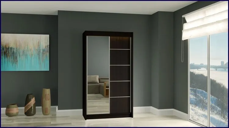 - Duże lustro na froncie szafy optycznie powiększa przestrzeń.