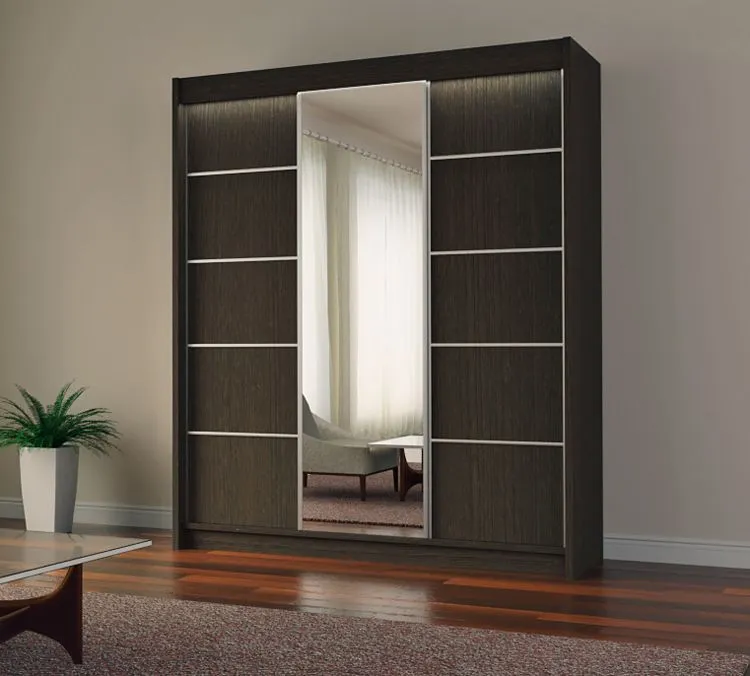 Mebel, bez którego nie można wyobrazić sobie doskonale zorganizowanej przestrzeni to szafa. Duża szafa, z odpowiednio zaprojektowanym wnętrzem: dużą ilością półek, miejscem na wieszaki i szufladami na dodatki to mebel absolutnie niezbędny w każdym przedpokoju czy garderobie. W niewielkich wnętrzach taka szafa doskonale zorganizuje przestrzeń postawiona także w sypialni czy w pokoju dziennym. Jest idealnym miejscem przechowywania ubrań i dodatków, a także wszystkich rzeczy, które są chcemy mieć pod ręką, ale nie na widoku. Szafa z drzwiami przesuwnymi Ovos 4X w kolorze wenge została skonstruowana z najwyższej jakości laminowanej płyty meblowej o grubości 16 mm o klasie higieny E1. Dodatkowo uszlachetniono ją cienkimi filmami melaminowymi, by zwiększyć jej trwałość. Płyta posiada specjalistyczne włókna ułożone różnokierunkowo o strukturze sinusoidalnej, co zapewnia nadanie jej cech jakościowych oraz wytrzymałościowych. Wnętrze zostało zorganizowane w przemyślany sposób: szafa zawiera 7 pojemnych półek na ubrania, które przechowujemy złożone w kostkę, większe gabarytowo przedmioty, walizki, zapasową pościel czy ubrania sezonowe. Szafa mieści także przestronną dwudzielną część z drążkami, przeznaczonymi do przechowywania odzieży wierzchniej, garniturów i ubrań wizytowych oraz dwie wysuwane szuflady na dodatki lub bieliznę. Na froncie szafy zostało zamontowane duże lustro, które pełni funkcję praktyczną, ale także estetyczną, powiększając optycznie i rozjaśniając pomieszczenie. Szafa Ovos 4X została wyposażona w praktyczne i wygodne drzwi przesuwne z systemem jezdnym Laguna. Dodatkowych atutem drzwi przesuwnych jest oszczędność przestrzeni - rozwiązanie to szczególnie dobrze sprawdza się w niewielkich wnętrzach. W Ovos 4X Twoja garderoba będzie zawsze posegregowana i łatwo dostępna, a Twoja przestrzeń doskonale zorganizowana i schludna.