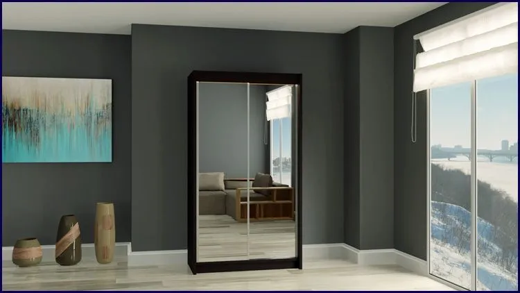 - Duże lustro na froncie szafy optycznie powiększa przestrzeń.