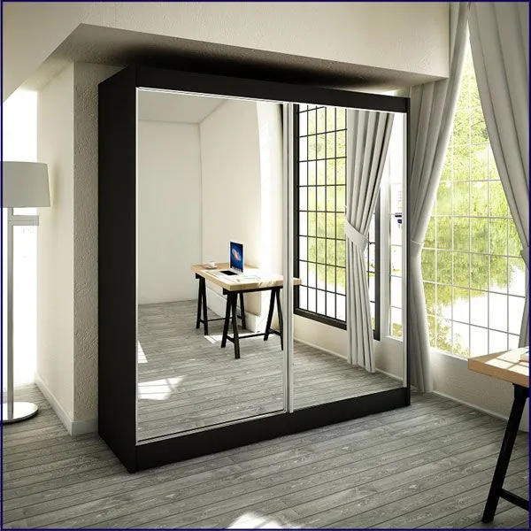 - Duże lustro na froncie szafy optycznie powiększa przestrzeń.