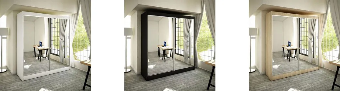 Szafa Muno 5X to komfortowy mebel do sypialni, pokoju dziennego lub przedpokoju, gdzie będzie pełnić rolę rodzinnej garderoby. Szafa zachwyca elegancką linią oraz ciekawą kolorystyką frontów do wyboru. Duże lustro na froncie optycznie powiększa niewielkie pomieszczenie. Pojemna i szeroka na 200 cm szafa pomieści wszystkie ubrania, odzież wierzchnią, dodatki, a także ubrania sezonowe i walizki. Jest to nowoczesna propozycja, która sprawdzi się w niejednej aranżacji, od minimalistycznej po styl skandynawski. Jej uniwersalny styl i subtelna elegancja spowoduje, że szafa łatwo dopasuje się stylistycznie do innych mebli. Zobacz jak łatwo zorganizujesz swoje wnętrze z szafą Muno 5X.