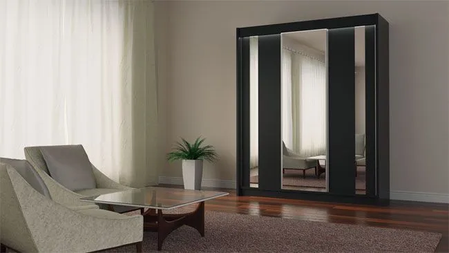 Nie musisz już śnic o wyjątkowym meblu, w stonowanej, nieprzytłaczającej wnętrza kolorystyce. Szafa Valgart 3X zwycięża spectrum kolorów, od chłodnej bieli, zmysłowej czerni i eleganckiej szarości, po ciepłe odcienie dąb sonoma, dąb craft złoty i egzotyczne wenge. Prosta forma mebla pozbawiona wszelkich zbędnych ornamentów, została wzbogacona jedynie taflą lustra, znajdującą się na jego froncie. Stawiając szafę w sypialni osiągniemy harmonię, która sprzyja zdrowemu snu. Jeśli miejscem docelowym będzie przedpokój, zapanuje w nim ład i porządek. Lustro zwiększy optycznie każdą powierzchnię, w której zdecydujemy się umieścić szafę. Źródło światła o prostej formie jest nieodzownym elementem wnętrz zaaranżowanych w stylu minimalistycznym. Nasza szafa została wyposażona w dyskretne, energooszcędne oświetlenie LED, które dodatkowo podkreśli wyjątkowy klimat Twojego domu.