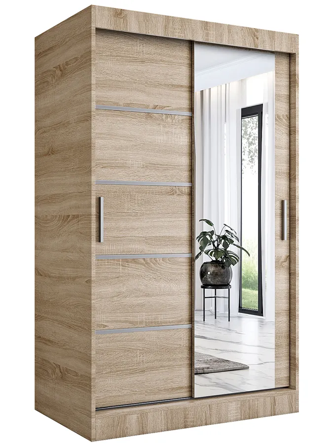3. Myśl jak designer. Jak najłatwiej osiągnąć efekt świeżego, jasnego, komfortowego wnętrza? To proste! Schowaj wszystkie ubrania i akcesoria w pomysłowej szafie z lustrem i przesuwnymi drzwiami! Na przykład w przesuwnej szafie Lorenza 120 3X marki Edinos Premium.