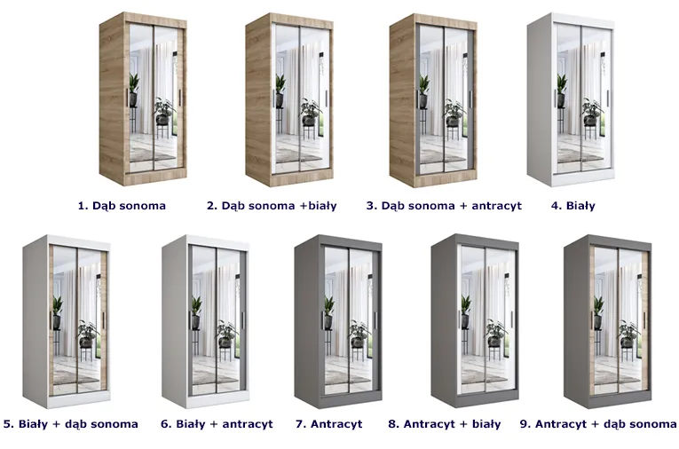 Dotyczy: Szafa przesuwna z lustrem w kolorze dąb sonoma - Kukkin 2X