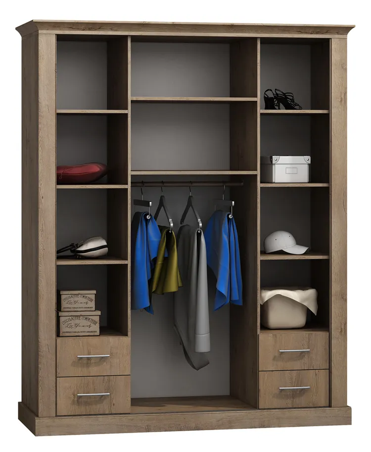 - Odpowiednio zorganizowana przestrzeń do przechowywania z pojemnymi półkami, szufladami i drążkiem na wieszaki.