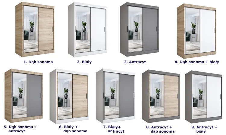 Dotyczy: Szafa 150x200 przesuwna z lustrem antracyt + biały - Seko 4X