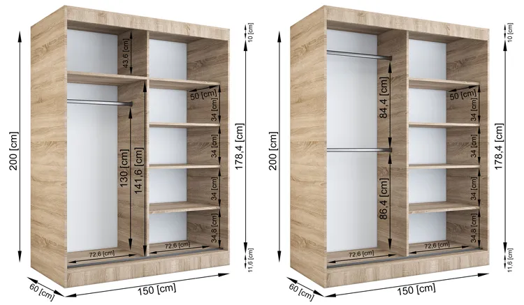 Dotyczy: Szafa przesuwna dąb sonoma z lustrem 150 cm - Seko 4X