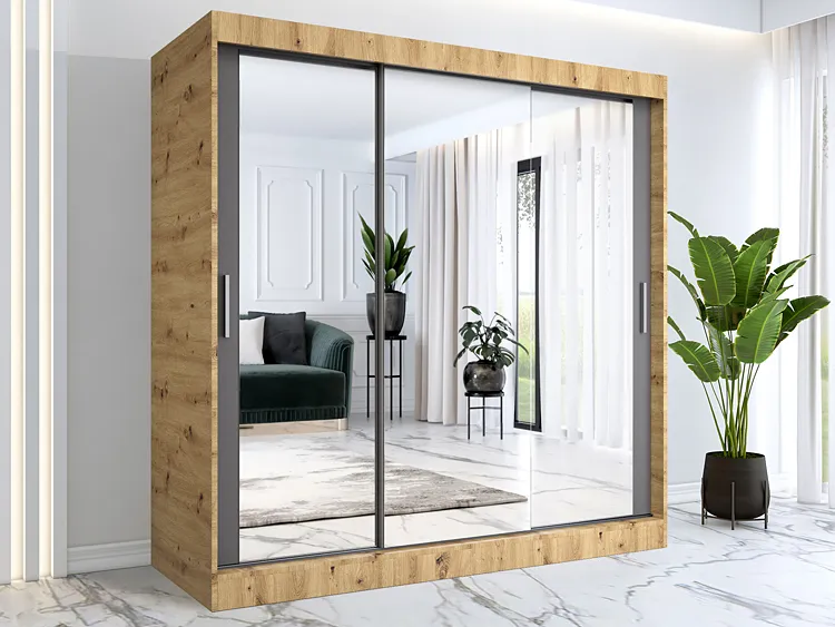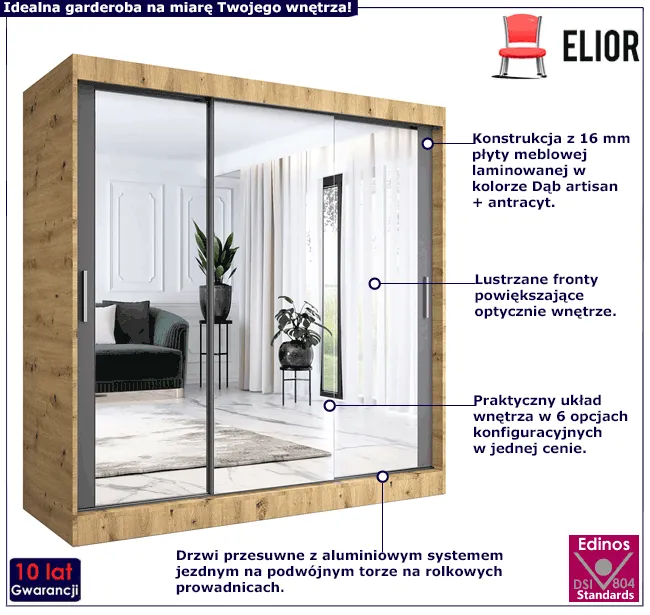 Dotyczy: Szafa przesuwna z lustrem dąb sonoma 200 cm - Kukkin 6X