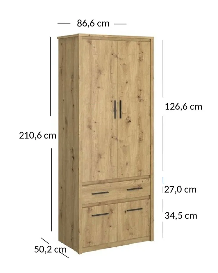 Dwudrzwiowa szafa z drązkiem z szufladą Toreso 15X