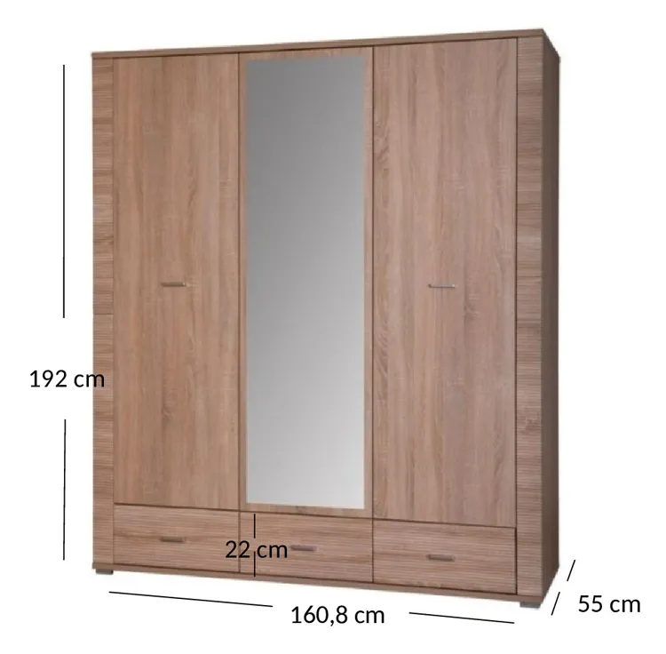 • Wymiary:? wysokość: 192 cm, szerokość: 160,8 cm, głębokość: 55 cm.