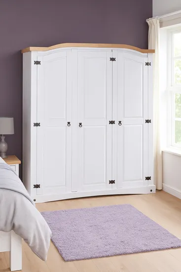 Szafa z potrójnymi drzwiami z drewna sosnowego biały + miodowy brąz - Emaro 5X