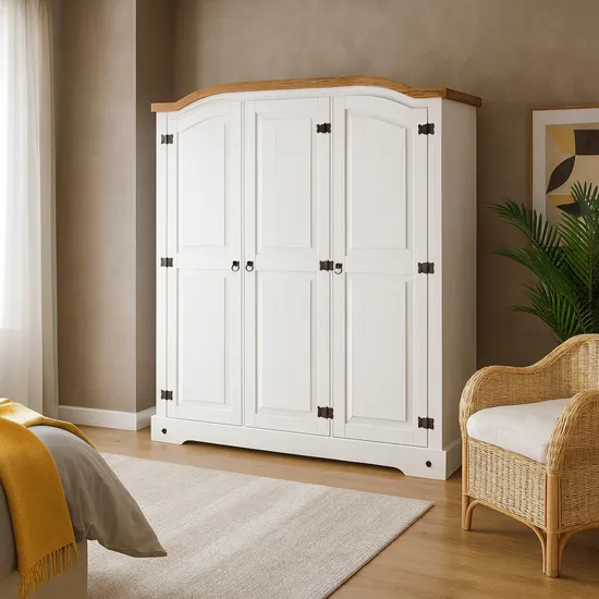 Szafa z potrójnymi drzwiami z drewna sosnowego biały + miodowy brąz - Emaro 5X