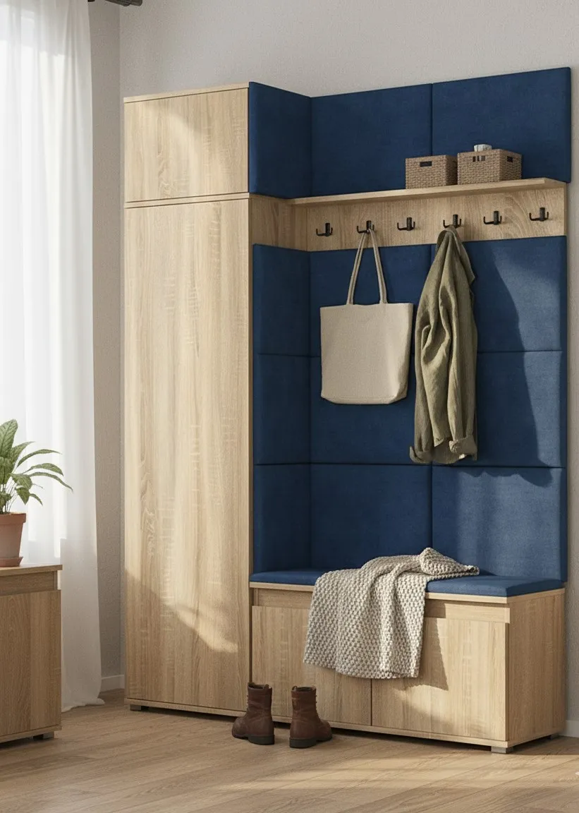 Dotyczy: Garderoba z szafą i nadstawką do przedpokoju dąb sonoma + szary - Linez 3X