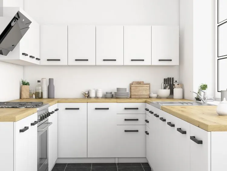 Dotyczy: Zestaw białych mebli kuchennych z blatem dąb artisan - Igaris