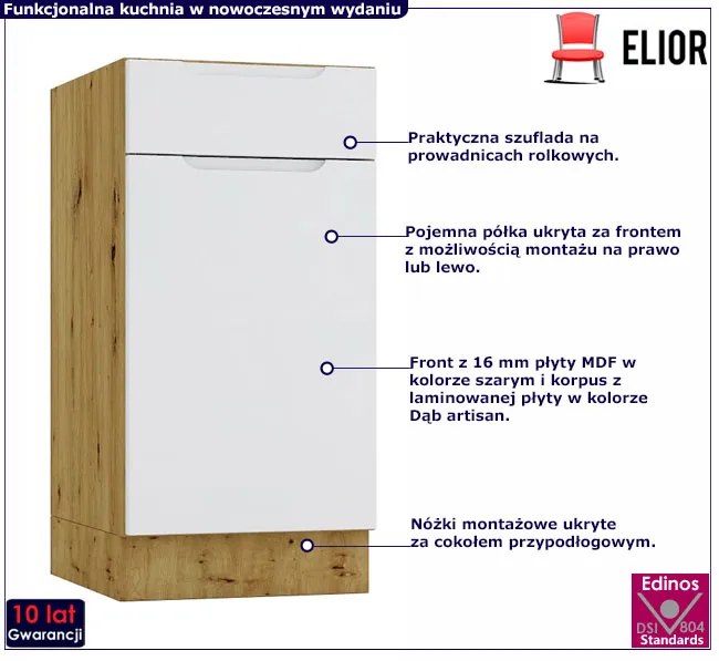 Dotyczy: Szafka dolna z szufladą 40 cm dąb artisan + czarny - Orfa 5X