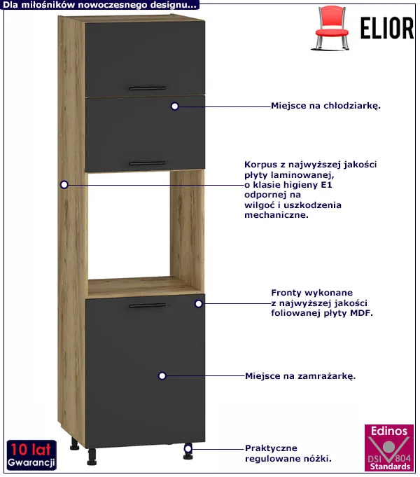 - Kolor: Front w kolorze antracyt, korpus dąb craft. Uchwyty metalowe - chromowane. Kliknij i sprawdź także inne szafki kuchenne w sklepie Edinos.pl. Stwórz swój praktyczny zestaw mebli.