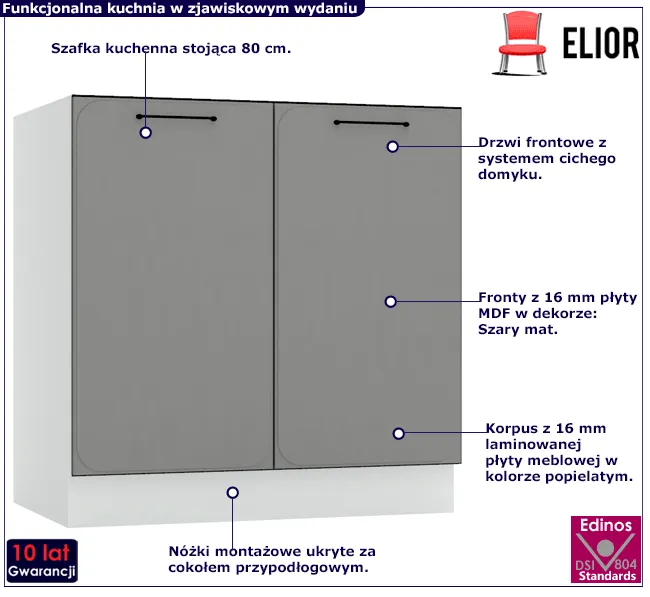 Szafka kuchenna dolna 80 cm szary mat - Frev 16X